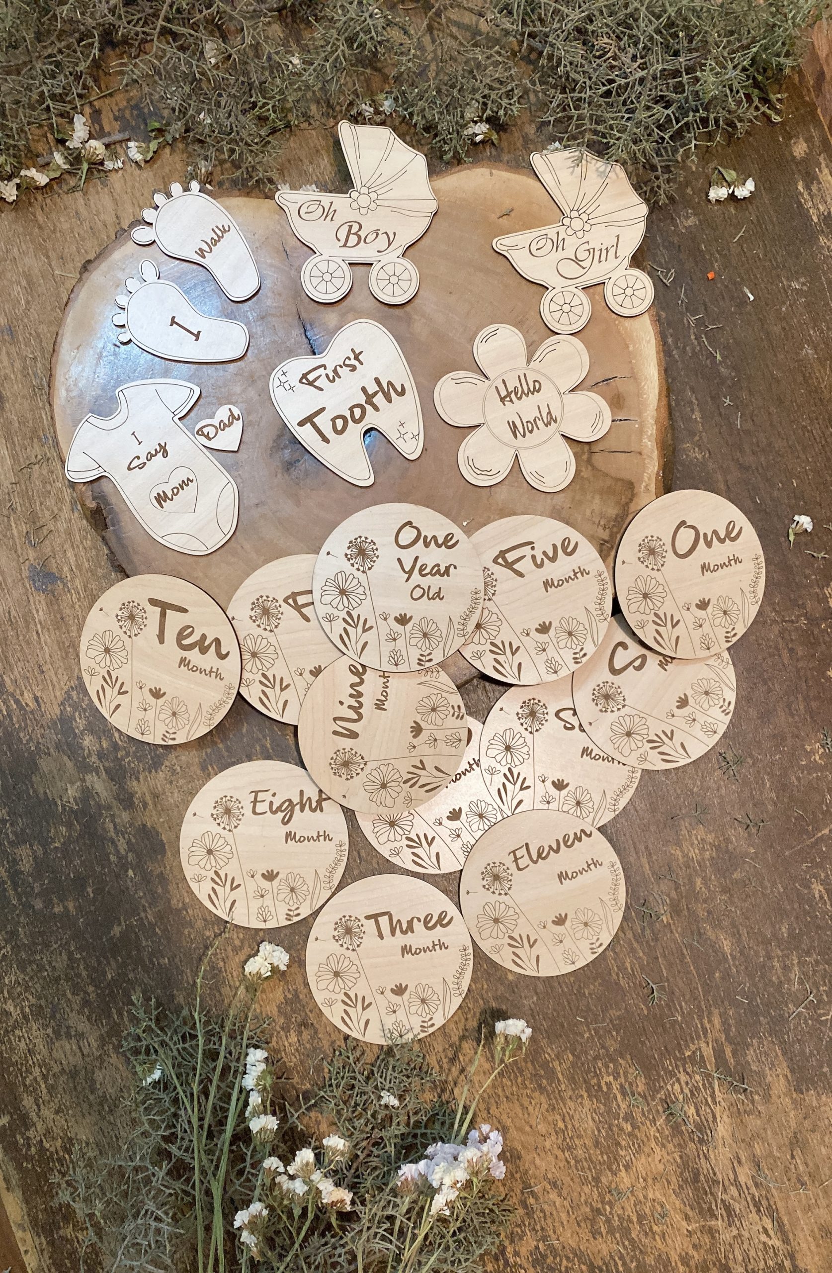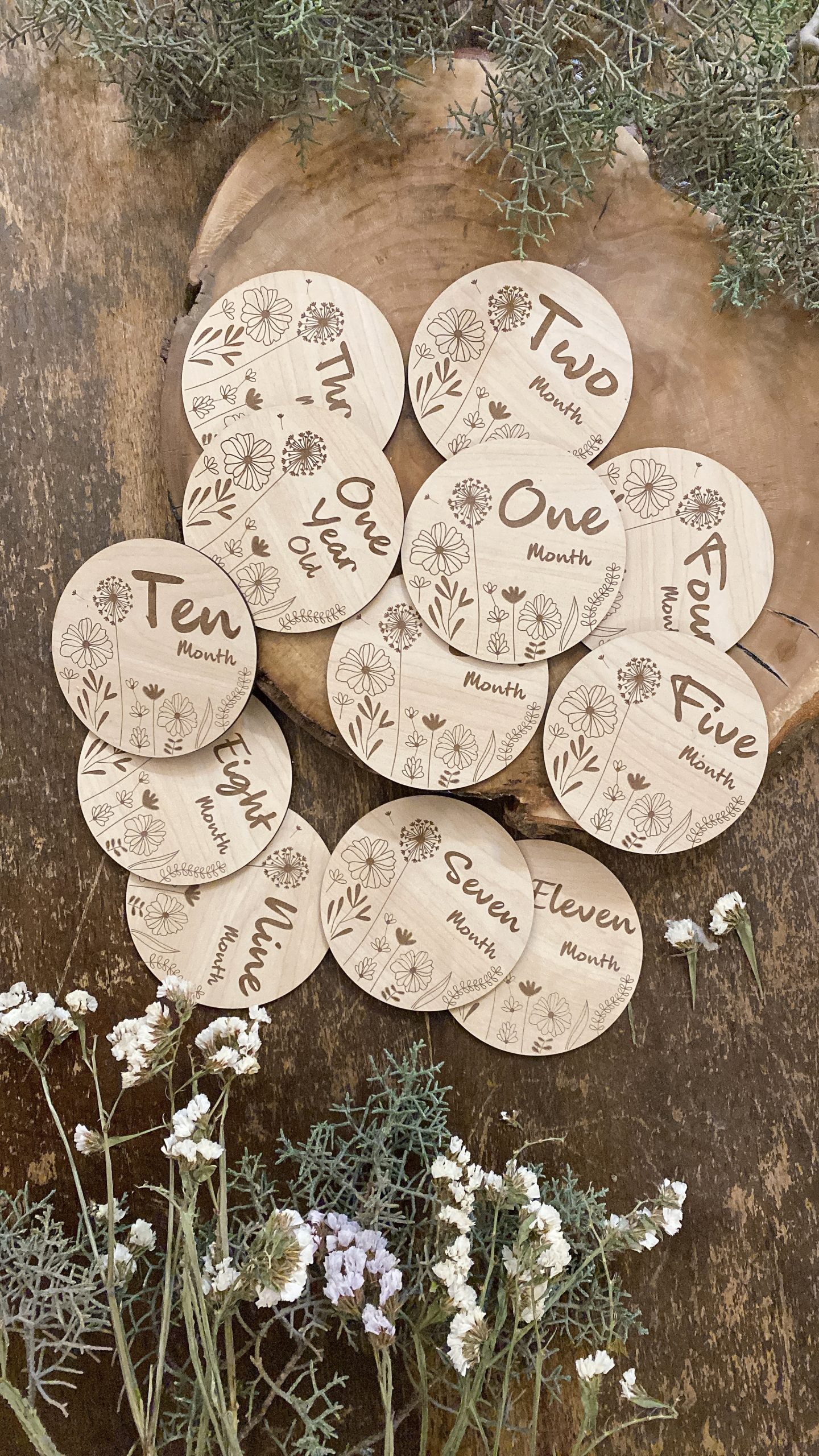پک 18تایی دیسک چوبی ماهگرد نوزاد و بارداری در سیسمونی